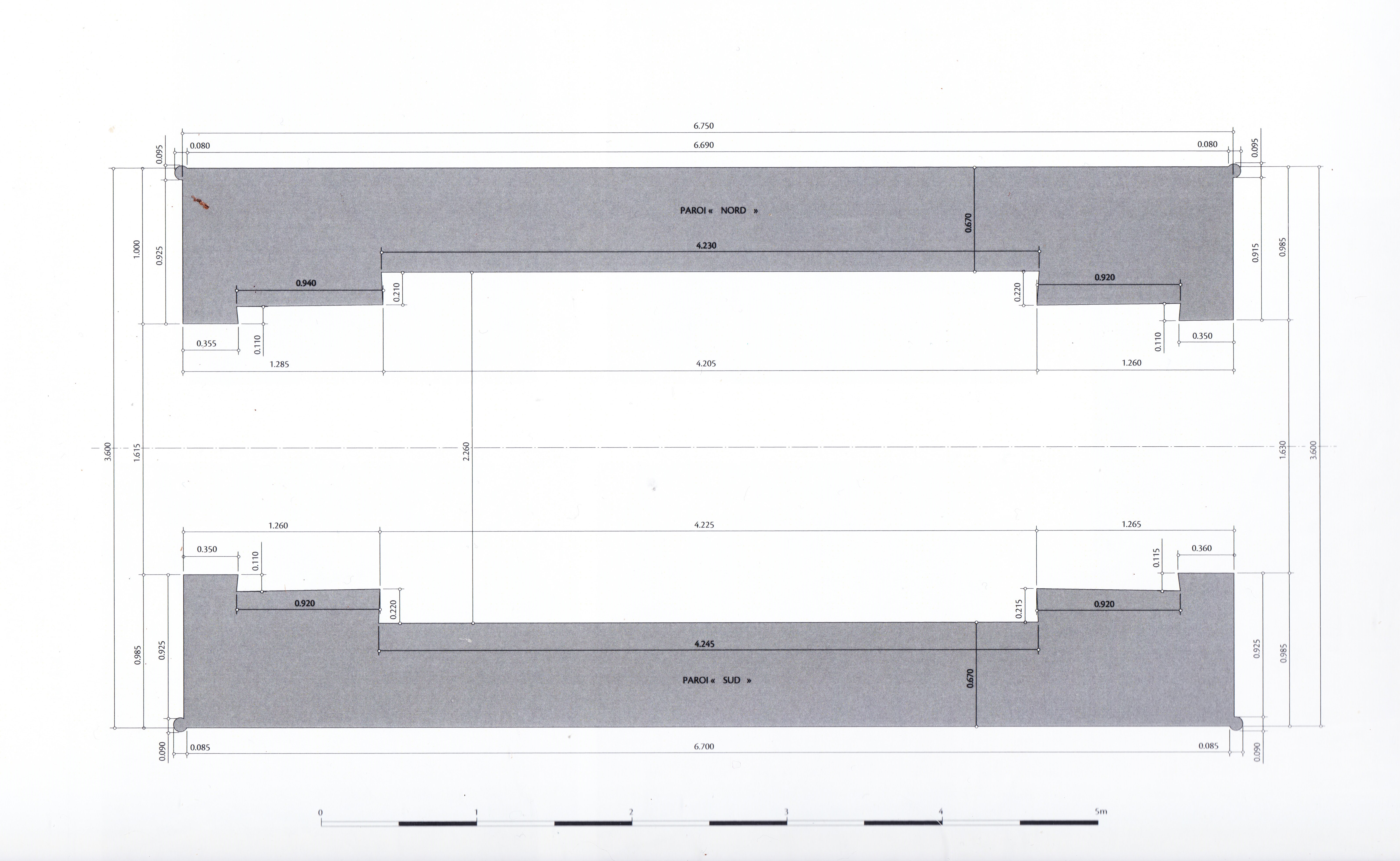 Côté Nord Est 0.985 m et 1.630 m soit 2.615m